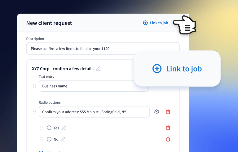 Request documents or info from clients with authorization-free client requests, even if they’re not logged into TaxDome.