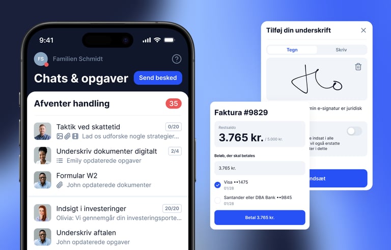 Med mobilappen kan dine klienter nemt interagere med dit firma på samme måde, som de normalt ville gøre via den webbaserede klientportal. De kan tilgå, gennemgå og underskrive dokumenter digitalt, betale fakturaer, sende sikre beskeder og meget mere – direkte fra mobilen.