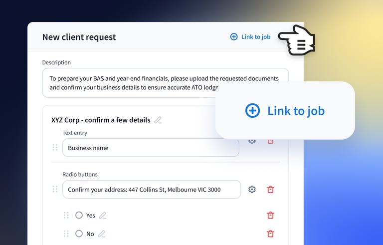 Easily create ad-hoc requests. Link requests to jobs and the job will move automatically once the information is provided.