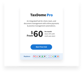 Get a taste of TaxDome’s capabilities — start your 2-week free trial today. No credit card required.