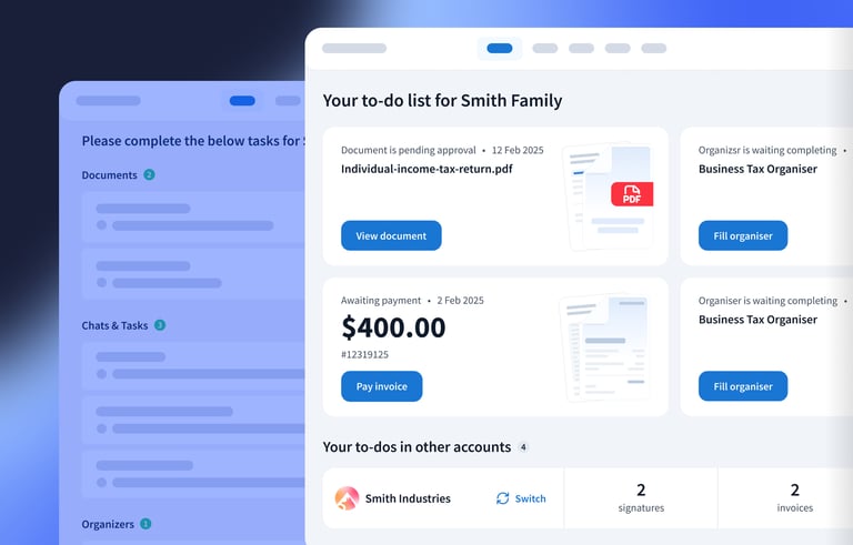 TaxDome lets them handle everything with one login — from signing documents and paying invoices to chatting with your team.