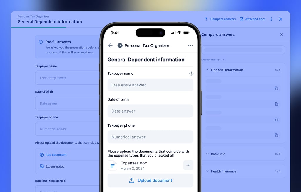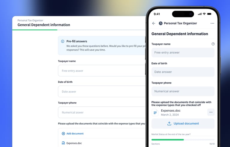 The best organizers are those clients complete. TaxDome’s organizers provide a frictionless experience — answers auto-save, forms work on any device, reminders are automated, and returning clients don’t have to re-enter data.