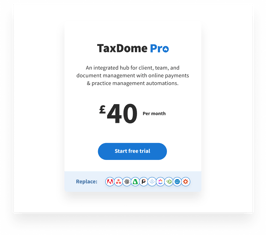 TaxDome offers one pricing plan for £40 per month per user with unlimited storage, clients, e-signatures and free training.
