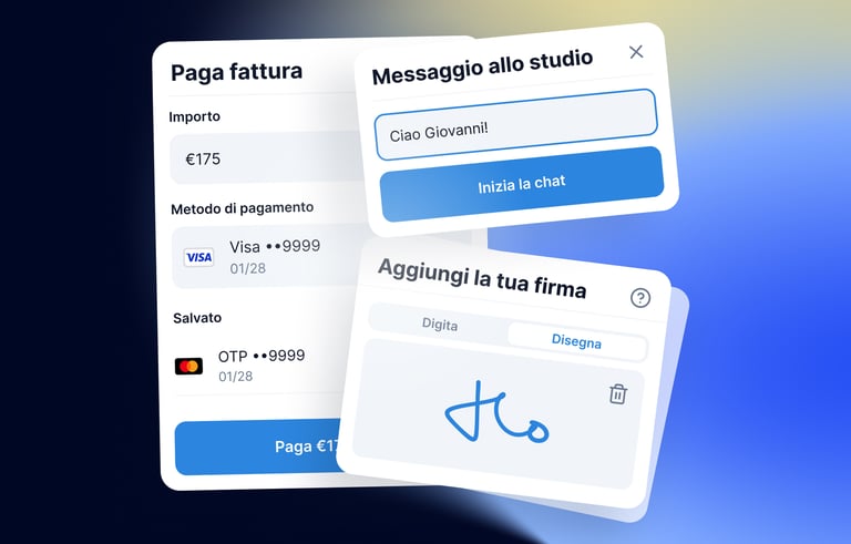 Un unico posto dove i clienti possono comunicare, caricare, firmare e approvare documenti, completare task, prenotare appuntamenti, inviare questionari e molto altro ancora.