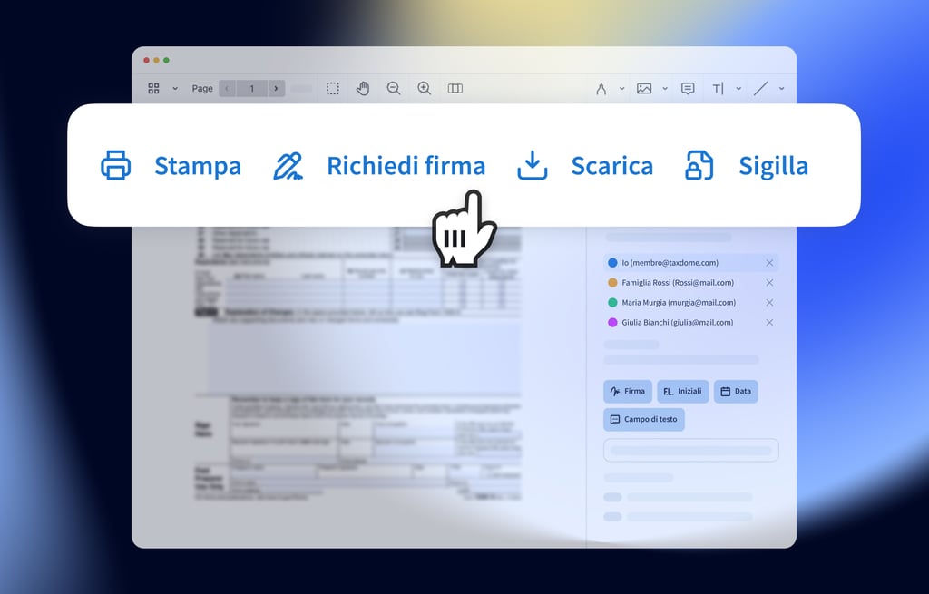 Certo! Con un solo clic, puoi richiedere firme elettroniche con valore legale direttamente dal visualizzatore PDF.