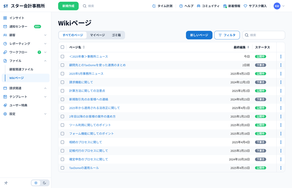 スタッフのパフォーマンス、売上、工数、案件・タスク等、様々な観点のレポートをTaxDome上で随時チェックが可能