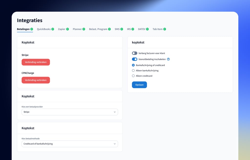 Het ultieme praktijkbeheerplatform voor complete dienstverlenende belasting-, boekhoud-, en accountantskantoren