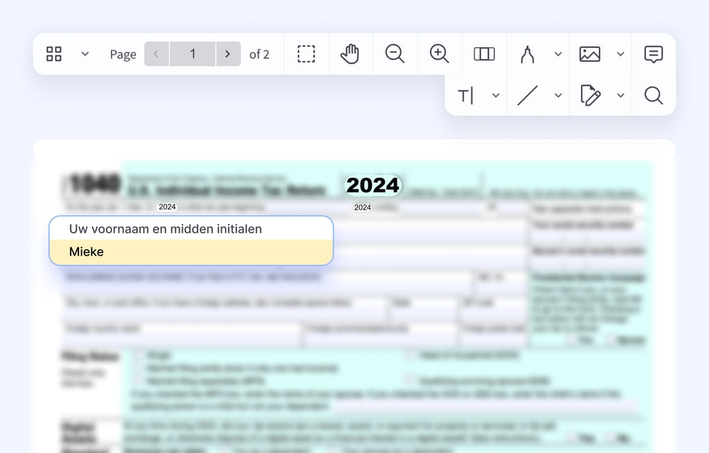 De TaxDome pdf-editor is een ingebouwde tool waarmee u invulbare pdf-formulieren kunt bekijken, bewerken, annoteren, samenvoegen, herschikken en maken. U hoeft geen software van derden, zoals Adobe, te gebruiken.