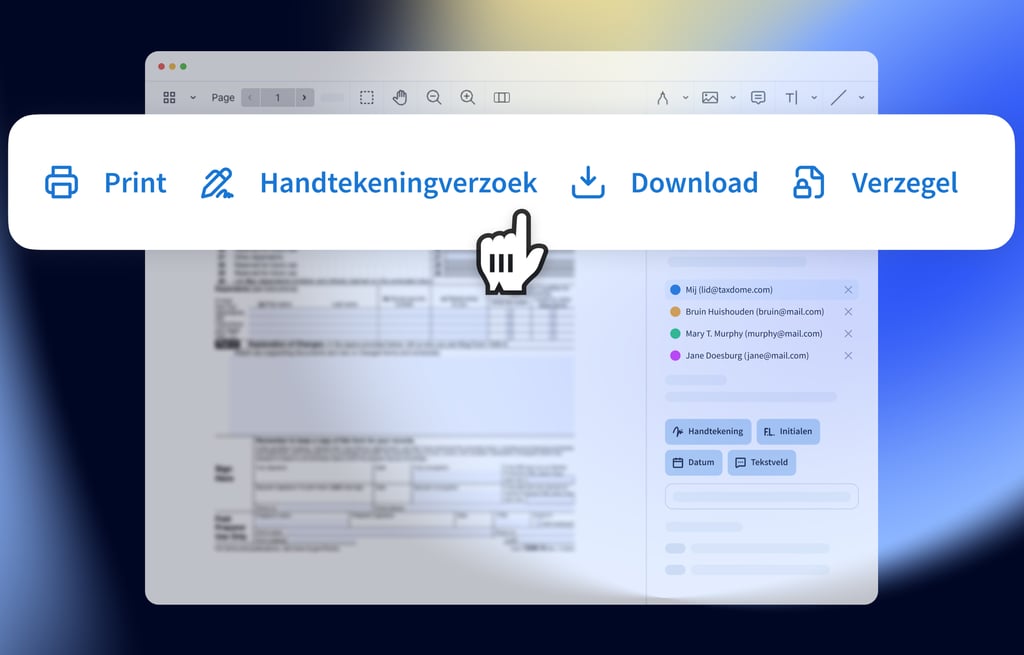 Jazeker! Met één klik kunt u rechtstreeks vanuit de pdf-viewer juridisch bindende e-handtekeningen aanvragen.