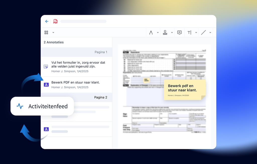 Absoluut. De ingebouwde pdf-editor beschikt over uitstekende tools voor weergave, annotatie en samenwerking. Alle wijzigingen in de pdf worden opgeslagen in uw TaxDome-account.