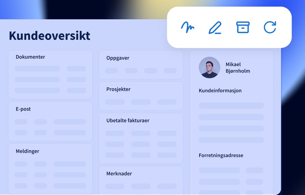 Ett sted å kommunisere med deg, laste opp, digitalt signere og godkjenne dokumenter, fullføre oppgaver, betale fakturaer, bestille avtaler, sende inn skjemaer og mye mer.