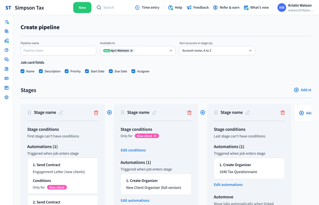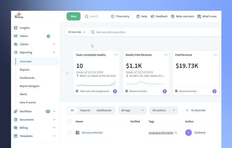 Track your firm’s performance: create reports on invoices, time entries, jobs, tasks, and pipelines
