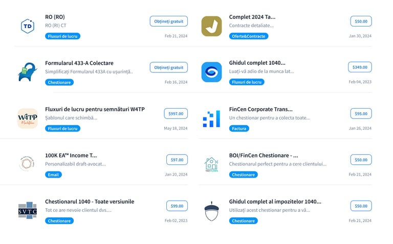 Obțineți șabloane predefinite din TaxDome Marketplace