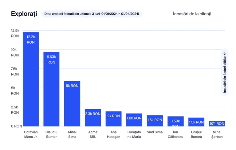 Creați rapoarte personalizate sau folosiți opțiunile predefinite pentru acces rapid la informații.